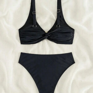 Black Sexy Women's Beach Ruffle Bikini Set
