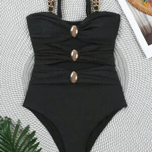 Black Sexy Women's Colorblock Hollow Out One Piece Swimsuit