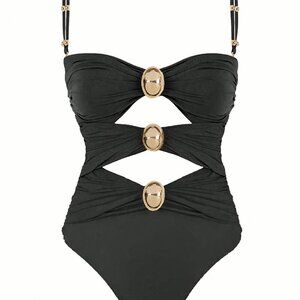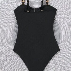 Black Sexy Women's Colorblock Hollow Out One Piece Swimsuit