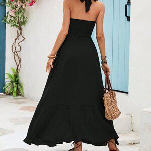 Black Sexy Women's Hollow Out & Split Design Halter Neck Dress