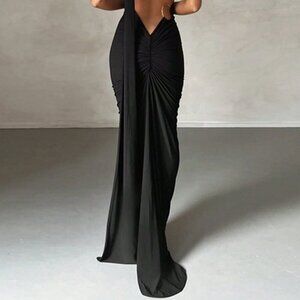 Black Sexy Women's Ring Linked Ruched Backless Dress