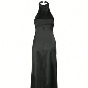 Black Sexy Women's Sleeveless V-Neck Slit Dress With Thin Shoulder Straps