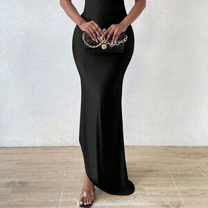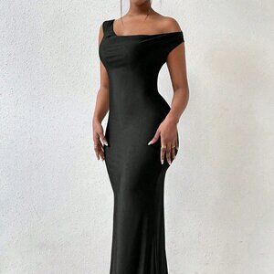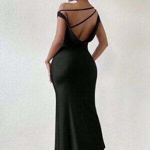 Black Sexy Women's Solid Asymmetrical Neck Open Back Dress