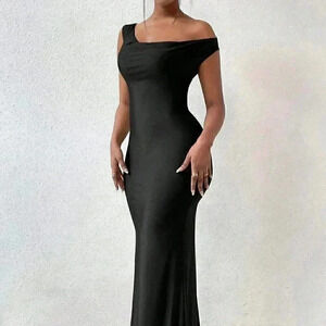 Black Sexy Women's Solid Asymmetrical Neck Open Back Dress