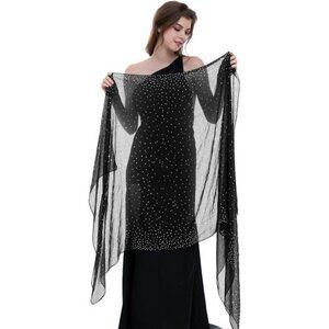 Black Shawl Wraps Rhinestone Formal Evening Dress Prom Wedding Bridal Shawl