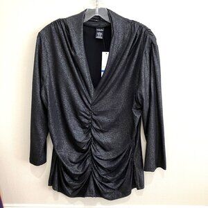 Black Sheen Stetch Ruched Top, Party Fashion, Raphaella, NWT