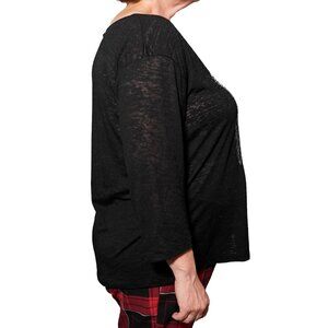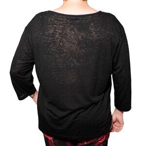✨ Rare European find! ✨ Imported from Stockholm, this Generous by Lindex top is a chic piece you won’t see on everyone. Made of lightweight black sheer fabric (intentionally sheer, not stains) and adorned with sparkling rhinestone angel wings, it adds instant drama. Labeled XL but oversized to fit up to 2X (18–20). In good condition with light pilling under arms. 📏 Pit to pit 24½ inches. Model is size 18 (bust 47"), 5’3” tall.