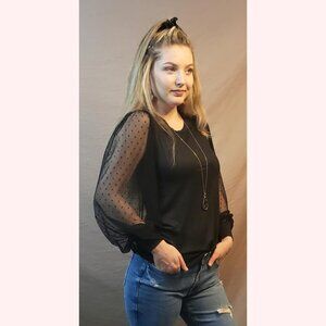 Black Sheer Balloon Sleeve Swiss Dot Soft Shirt