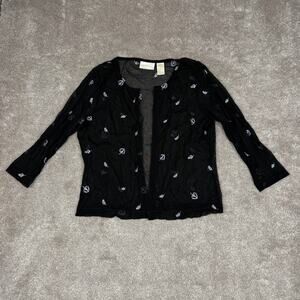 Black Sheer Blouse Long Sleeve Size L Cardigan Christie & Jill Romantic Goth