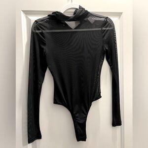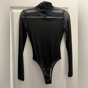 Only worn once. Breathable mesh fabric for comfort. Mock neck styling. Gusset snap button closure.