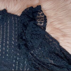 Black Sheer Crochet Mock Neck Long Sleeve Blouse