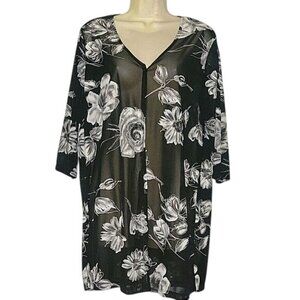 Black Sheer Floral Open Front Cardigan By Carolyn Strauss Collection Size Large