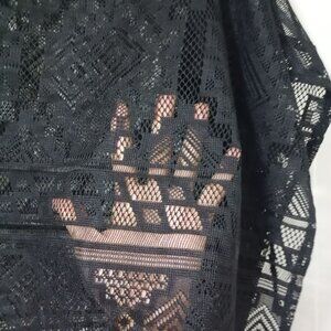 Black Sheer Lace Fringe Swim Cover-Up Sarong Womens One Size