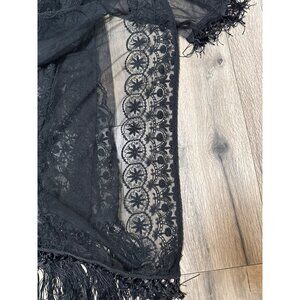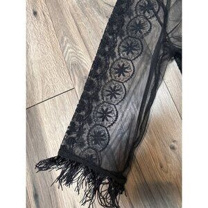 Black Sheer Lace Kimono Whimsy Goth Fairy Boho Festival Jacket Fringe Embroidere