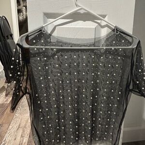 Stylish black sheer crop top adorned with pearls. Perfect for a night out. Only wore once to a concert