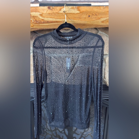 Black Sheer Rhinestone Top