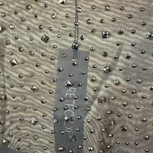 Design: A sheer long-sleeve top featuring all-over rhinestone embellishments that create a sparkling effect.
