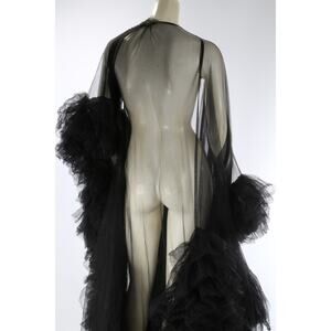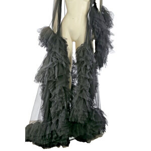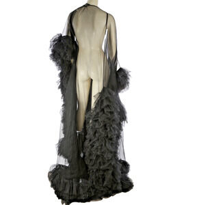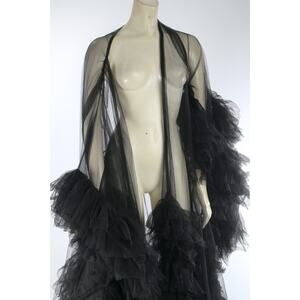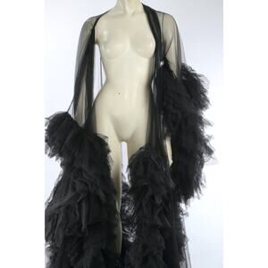 Black Sheer Tulle Puffy Robe Gown Dramatic Layered Boudoir Photoshoot Dress S