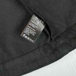 Elevate your wardrobe with this chic black jacket from Misc Elevated Basics. The jacket features a combination of zippers, snaps, and buckle pockets as accents, giving it a stylish and edgy look. It's made of cotton material and comes in a size small.