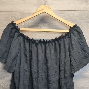 Black Short Sleeve Elastic Neckline Blouse Women's Plus Size 4x