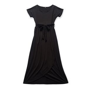 Black Short Sleeve Front Split Midi Dress✨