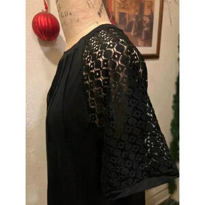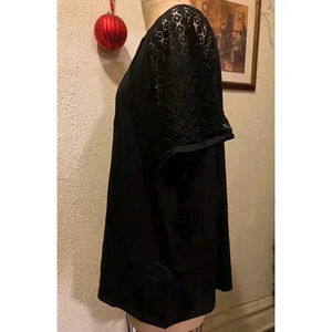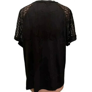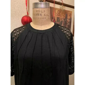 Black Short Sleeve Pleated Crew Neck Stretch Lace Sleeve Top NWT Size 3XL