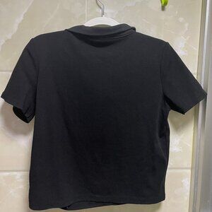 Pre-owned black short-sleeve cropped polo. US size 6–8 (EU M).