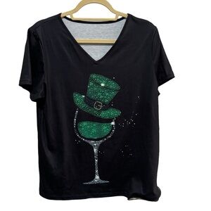 Black - Short Sleeve T-Shirt - St Patrick Theme Wine Glass - NWOT - Size L