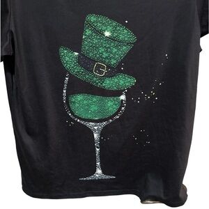 Black - Short Sleeve T-Shirt - St Patrick Theme Wine Glass - NWOT - Size L - Did not come with Tags