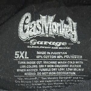 This Gas Monkey Garage "Live Fast" Authentic Black T-Shirt in size 5XL is a must-have for any fan of the popular automotive reality TV show. Made of comfortable cotton material, this short sleeve shirt features a crew neck and a logo accent from the Gas Monkey Garage brand. The black color and regular fit make it a versatile and stylish addition to any man's wardrobe, perfect for showcasing your love for both cars and the show. Machine washable for easy care, this t-shirt is ideal for those who appreciate both quality and style.