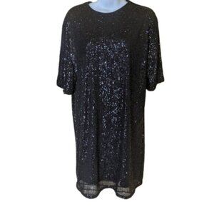 Black Short Sleeved Sequined Dress Size Small NEW NWT