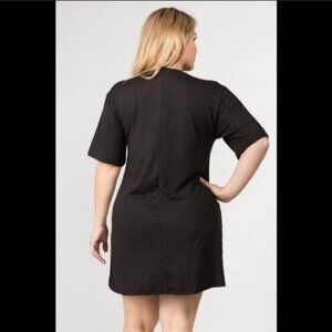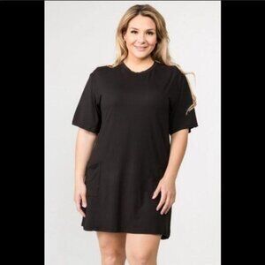Black Short Solid Dress With Pockets. Short, soft and stretchy fabric, two open front pockets, and above the knee length hem. 95% polyester, 5% spandex. Black color. Brand new in package.