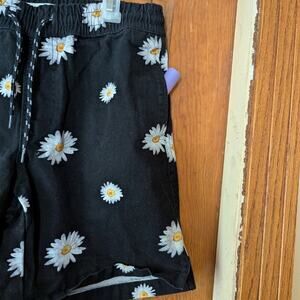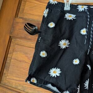 Stylish black shorts featuring a charming daisy print. Perfect for casual outings.