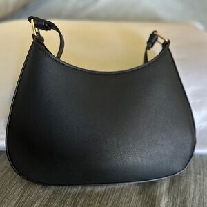 Sleek and sophisticated, this black shoulder bag exudes timeless elegance. Crafted in a smooth, structured silhouette, it’s accented with a striking gold horse bit detail—a refined nod to classic equestrian style. The adjustable shoulder strap offers effortless wear, while the polished hardware adds a touch of understated glamour. Perfect for both day and evening, this bag is a chic essential that pairs beautifully with any look.