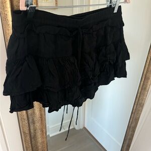Chic black mini skirt with ruffled layers. Perfect for a stylish look.