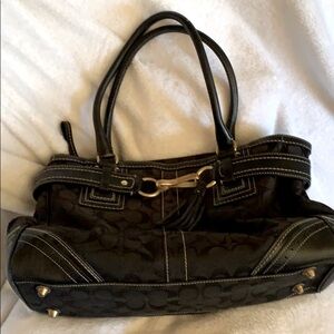 Black Signature “C” Fabric & Leather Coach Satchel - EXCELLENT Cond. - All stitching intact and strong- No rips or tears in lining- One wear spot that was touched up- see pics. Really Beautiful Bag. Any Questions Let me know.