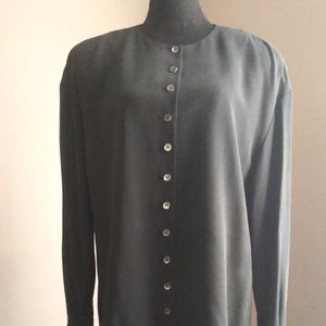 This silky vintage button-down blouse can double as a jacket. Has small shoulder pads. Excellent condition!