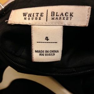 This is an elegant black dress from White House Black Market. It is a size 4 and fits well around the waist with a modest and stylish mid-length skirt. The straps have inset snaps that hold your bra straps in place. Appropriate for the office, cocktail parties, and the symphony!