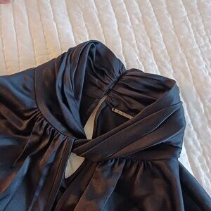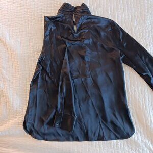 Elie Tahari black silk formal dress button-up shirt with high collar. Perfect for formal outings and professional business attire.