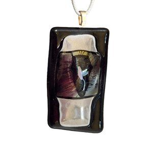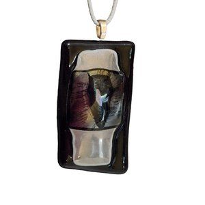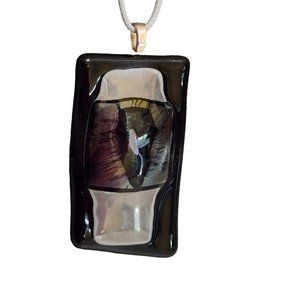 Black Silver Abalone Dichroic Fused Glass Necklace Pendant