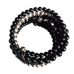 Black & Silver Beaded Wire Coil Wrap Bracelet