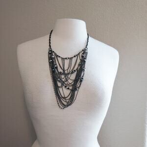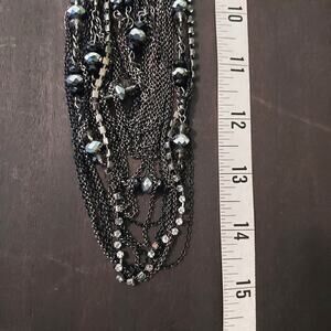 Beautiful piece with several strings of beads, rhinestones, chains etc.