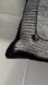 Beautiful crocheted front panel in black with gray/silver metallic yarn & large silver studs