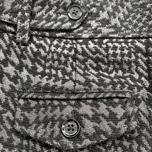 Gorgeous and classic shorts in black, dark silver gunmetal, and dark charcoal gray houndstooth pattern.