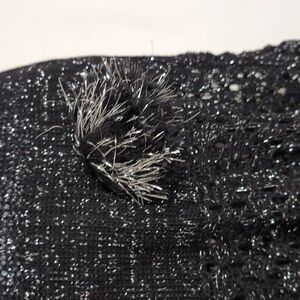 Black Silver Metallic Knit Dress with Pompom Front Vneck Size Medium