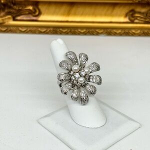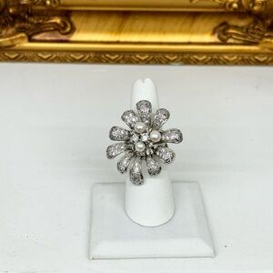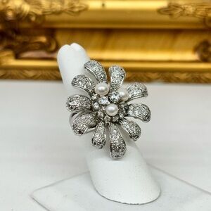 Black & Silver Rhinestone Starfish Ring - Bold Ocean-Inspired Statement Jewelry