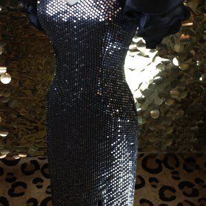 I mean, have you ever seen anything soo beautiful? Soo over the top in allllll of the right ways, that you just can't help but swoon? I know, same here. Straight out of your sequin dreams, this metallic black and silver Nadine gown showcases:
