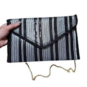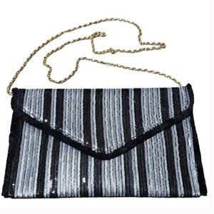 Black & Silver Shiny Sequin Envelope Clutch