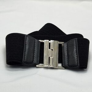 🔸️Black & Silver Wide Waist Elastic Belt Small