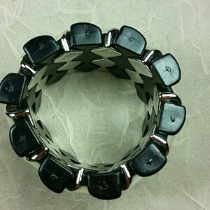 Black Silver diagonal square bracelet woven stretch EUC Mob Wife